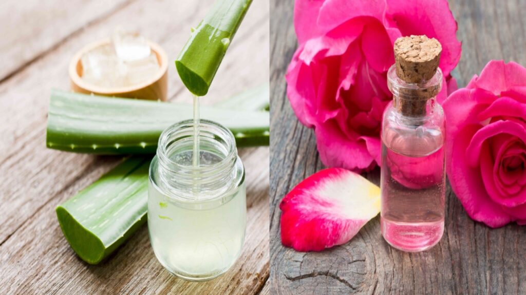 एलोबेरा और गुलाब जल को निखरी हुई त्वचा के लिए इस्तेमाल किया जा सकता है | क्युकी एलोबेरा जेल त्वचा के गहरे को hidrate करके उसे मुलायम और लोचदार बनता हैं , और उसमे मौजूद एंटीआक्सीडेंट और एंजाइम दाग धाबे को दूर करता हैं | वही गुलाब जल स्किन के जलन और एलर्जी से रहत दिलाता हैं और चेहरे को ताजगी बनाये रखने में मदद करता हैं | साथ ही ये दोनों का संयोजन चेहरे से धुल मिटटी और चेहरे पर होने वाले ऑयली पिम्पले को भी साफ रखते हैं |